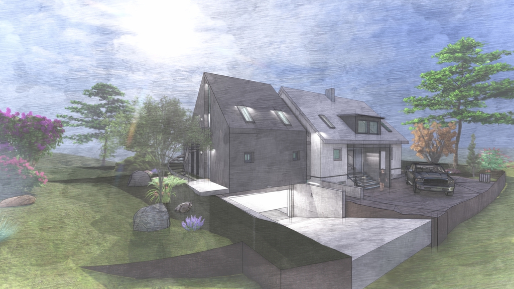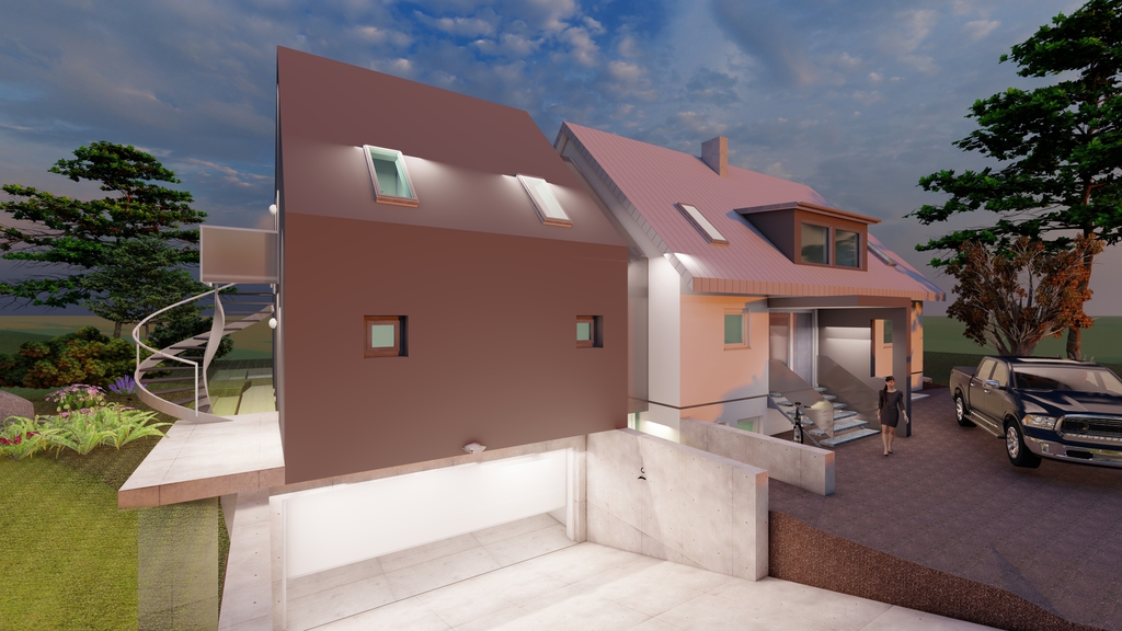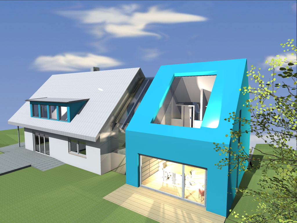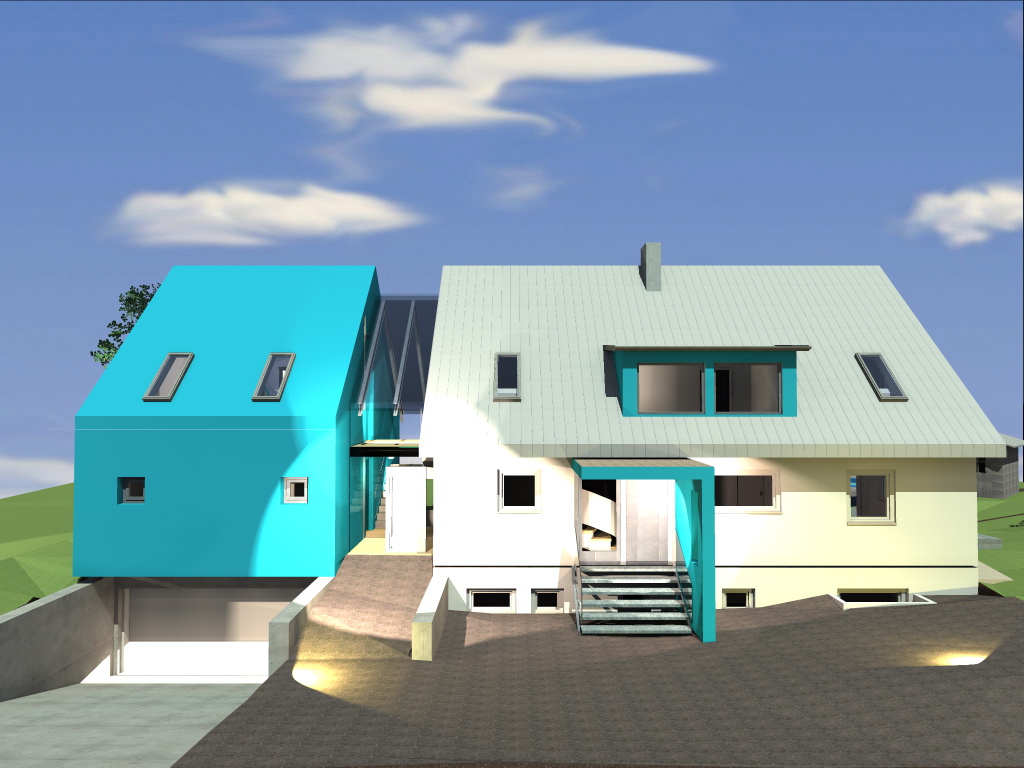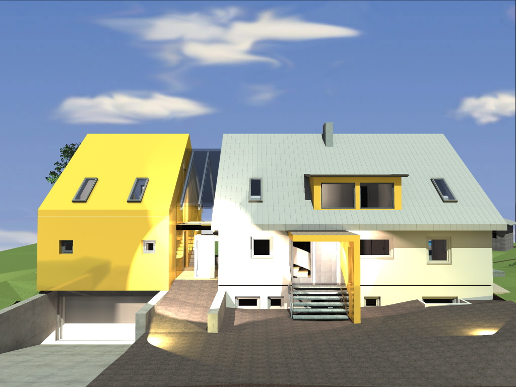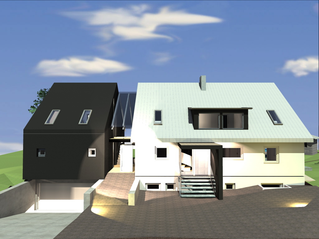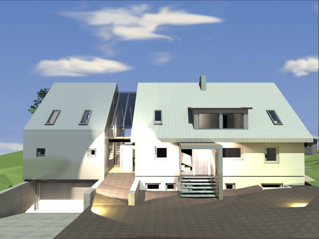 - Erweiterung eines Einfamilienhauses in ein Mehrgenerationenhaus mit Büroeinheit in Kupferzell-Westernach im Hoehenlohekreis, Holzbau.